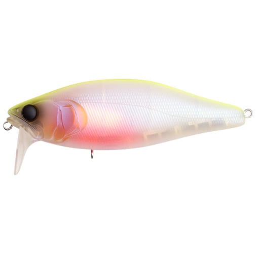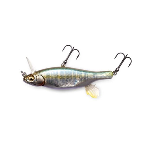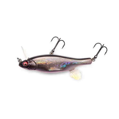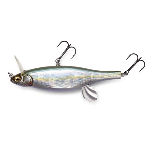 スローリトリーブでは、水面でスーパーローリングアクションを生み出し、腹部のフィン(尻ビレ)が左右にテイリングして水流を掻き分け、独自の三角波でアピール。リトリーブ速度を上げると、水面直下10~20㎝程度をローリング・スイムするサブサーフェスシャッドとして活躍。また、ジャークによるスラッピングでは、水面でスプラッシュやバブルを発生させるボイルベイトを演出。ストップ&ゴーでは、ダイブ後にフラッタリングやライズアップするパニックベイトを再現。