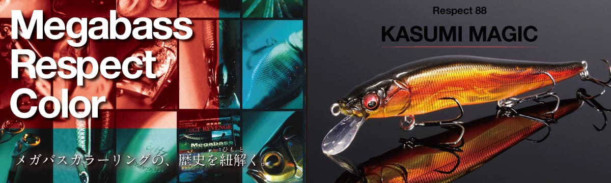 メガバスを代表する往年の名作カラーなどのの歴史や秘密を紐解く「メガバス・リスペクトカラー」。