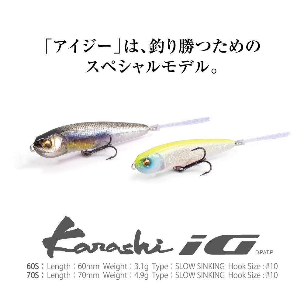 他の画像を見る 2026年新作 【4月下旬発送】KARASHI iG 70S FA シラウオ ¥ 1,760 税込 予約商品 こちらは予約商品です 予約受付期間 2026/03/27 18:00 〜 2026/04/30 23:59 お気に入りに登録する