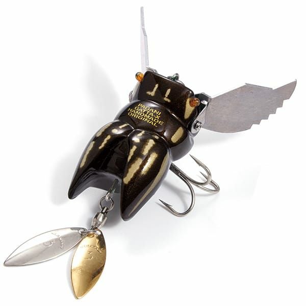 パガーニ・ハンドメイド・カスタムベイト「Gatta-X」。ストレートリトリーブでは、ウルトラハイピッチ・ノイジーとして水面からプラグボディを剥離させて軽快かつ高速で水を叩きます。つまり、Gatta-Xは、水面に落下したウイングバグが見せる、あの軽やかで激しいスラップダンスを手軽に披露します。