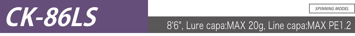 • CK-86LS 8'6", Lure capa:MAX 20g, Line capa:MAX PE1.2