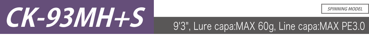 • CK-93MH+S 9'3", Lure capa:MAX 60g, Line capa:MAX PE3.0