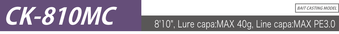 • CK-810MC 8'10", Lure capa:MAX 40g, Line capa:MAX PE3.0