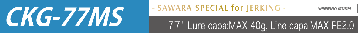 • CKG-77MS 7'7", Lure capa:MAX 40g, Line capa:MAX PE2.0