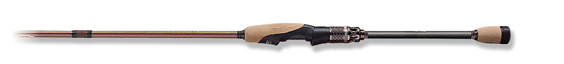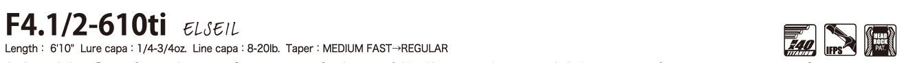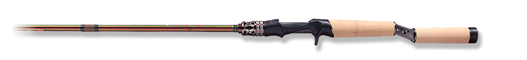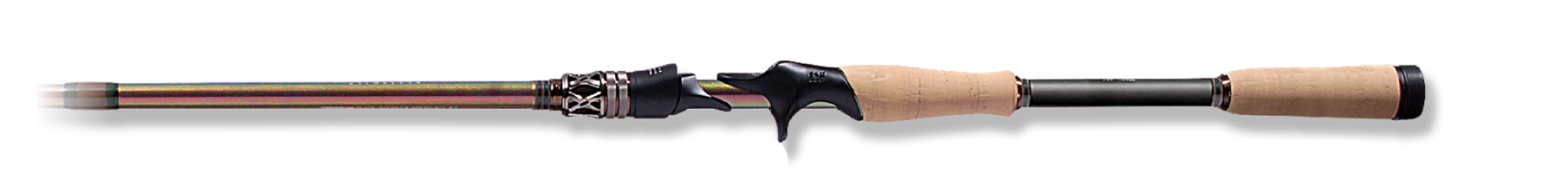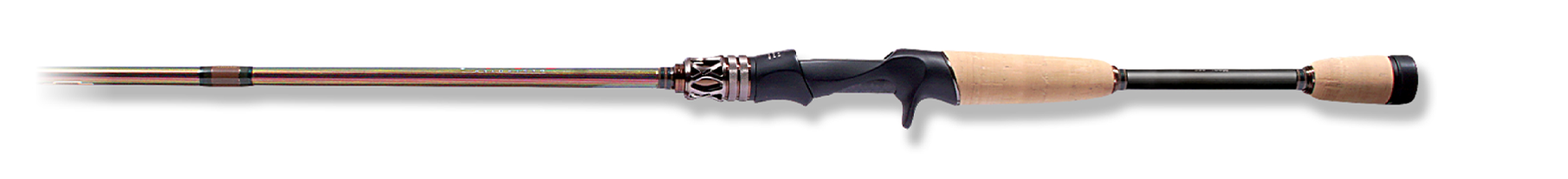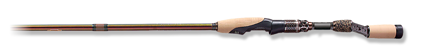 ベリーからバットセクションに高密度に配合したMX40スーパーチタンファイバーは、特製ソリッドティップが感知したバイトを金属質テンションで的確に即掛け、ファイトの応力をバットセクションまで広域に受け止め、ビッグバスをいなす豊かなファイティングトルクを発揮。なお、これまでのピュアカーボン製シャフトによるソリッドティップロッドとは異なり、チタンブランクによるバネ弾性が軽量リグを楽々ロングキャスト。快適なキャストフィールをもたらしています。