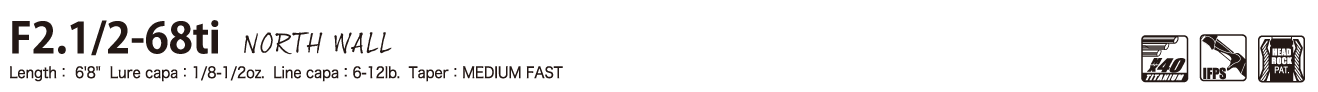 「ノースウォール」は、ベイトフィネスによるロングディスタンスのカヴァーアプローチを可能とする、フルコンタクト・ベイトフィネススペシャル。きわめて繊細なティップは、荷重に応じてフルベンドするテーパーと相まって、ストレスフリーのベイトフィネスを展開。MX40スーパーチタン・ハイブリッドによる6'8"のセミロングシャフトは、軽量リグを圧倒的なロングディスタンスではるか遠方へと送り出しつつも、距離を感じさせない直感的なベイトフィネスゲームを実現。パワーフォースF2.1/2クラスには見合わない、屈強なバットパワーと曲げるほどに溢れるハイトルクは、予期せぬビッグフィッシュをカバーから引き剝がし、確実にランディングに持ち込むためのもの。スーパーチタンシャフト構造による特性を存分に体感できるフィネスバーサタイルロッドです。