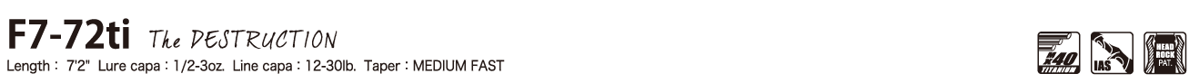 高密度スーパーチタン・インプラントがもたらす異次元のウルトラパワーとダイレクタビリティを具現化した「デストラクション」。ハイテーパー設計のMX40・スーパーチタン・ハイブリッドシャフトが生み出す強大なトルクは、ビッグベイトゲームや、ディープクランキング、ヘヴィスピナーベイトゲームなどで至極の安定感をもたらす使い心地を発揮。