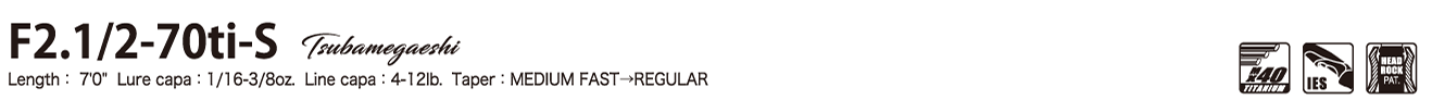 「燕(つばめ)がえし」は、7'0"ロングシャフトによるロングディスタンス・バーサタイルスピン。ミディアムファーストからレギュラーにスムーズに移行する匠の可変テーパーは、ダウンショット、ネコリグ、ワッキーなど、あらゆるリグに高次元で対応。多様な場面にアジャストし、ロングディスタンスアプローチにおける汎用性の高さを追求したモデルです。