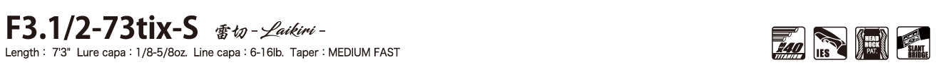 操作中は長さと重さを不当に感じさせることなく、軽快にティップがさばける機敏な使用感で広域フィールドを絨毯攻撃。ロングディスタンス・パワースピンの新たなる伝説が「雷切」からはじまります。