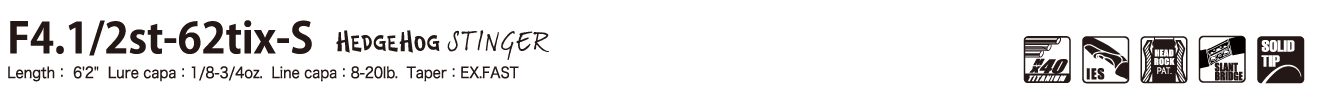 タフフィールドを打開する、あまたの伝説を生み出してきた「ヘッジホッグ・スティンガー」がスーパーチタンを身に纏い、現代のバスフィールドに降臨。HEDGEHOGの特殊製法によるソリッドティップと、EVOLUZIONのスーパーチタンシャフトがクロスオーバー。スピニングタックルで挑む、新世代のカバーフィネス専用機が誕生しました。