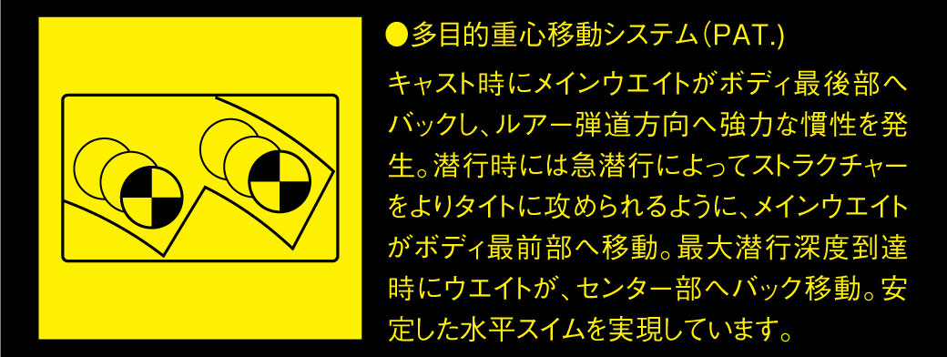 ▼代表的な多目的重心移動システム搭載ルアー「DX-FREE 3.0」を確認!