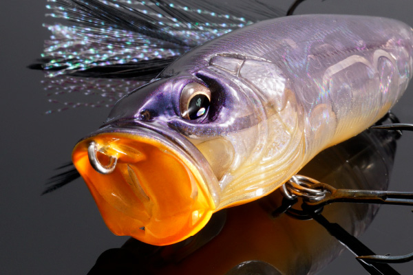背中は見る角度や光の加減によってブルーグリーン→バイオレットへと豊かな色調変化で青紫のキキョウを表現しています。また、ベリーには淡いゴールドパールをベースにした蛍光オレンジがカラーリング全体のコントラストを高めて、引き締まったカラーに仕上げています。
