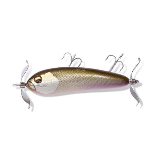 SCREAM-X Jr. 1/2oz.は、プロップフォーム(プロペラ形態)をベイトライクなスリムなボディ形態にデザイン。水面に食らいつくスタビリティを極限まで高め、あえて直進性能に特化してセットアップ。小型スイッシャーながら、タイトなプロペラボディが常時、水流をに瞬時に絡め取り、装着した前後のWプロップが激しく高回転。水面でスクリームサウンドを放ち、激しいフィーディング&ボイルをイミテートします。